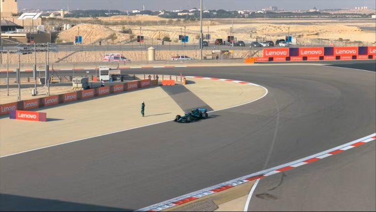 El AMR26 volvió a pararse en pista, esta vez con Fernando Alonso al volante, en el circuito de Sakhir.