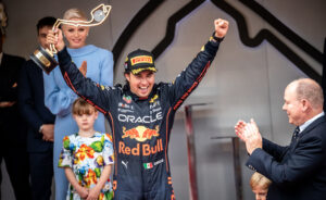 El mexicano renovó su contrato con la escudería austríaca a pocas horas de haber conseguido la victoria más importante de su carrera.