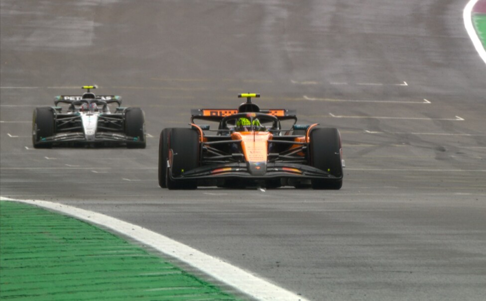 Paliando el mal momento de McLaren ante el abandono de su compañero Piastri, Lando Norris lideró desde la «pole» y triunfó en la carrera sabatina del GP paulista de F1, prevaleciendo sobre el novel Kimi Antonelli, quien con el Mercedes lo acechó desde el reinicio (tras la bandera roja) y lo escoltó a 0s845, seguido por George Russell con la otra «Flecha de Plata».