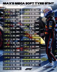 La solución que lo llevó a tantos éxitos en las últimas carreras, tres triunfos desde el receso, no funcionaba en un circuito de tan bajo agarre como el Hermanos Rodríguez. Así que redujo la carga sobre el alerón delantero para que el tren trasero no patinara tanto y evitara el desgaste de las cubiertas que traccionan. De esa forma, solo consiguió el quinto lugar en clasificación, dejándole la pelea por la pole-position a Lando Norris y Charles Leclerc. Pero el RB21 quedó vivo para el Grand Prix.