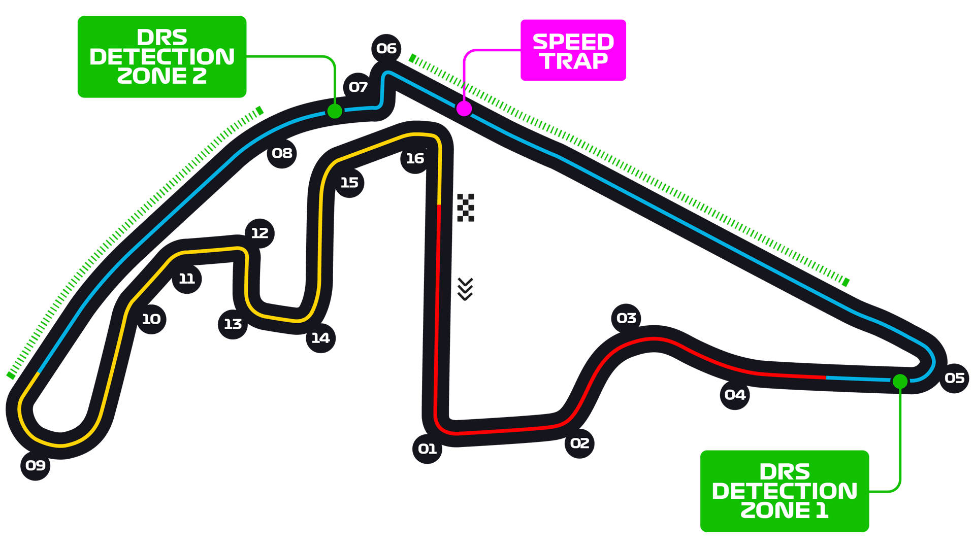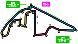 La carrera será a 58 vueltas, en un circuito de 5,281 kilómetros de longitud, con 16 curvas, una zona de DRS y un recorrido total de 306, 183 km. El récord de vuelta lo tiene Kevin Magnussen, con un tiempo de 1:25.637 (2024).