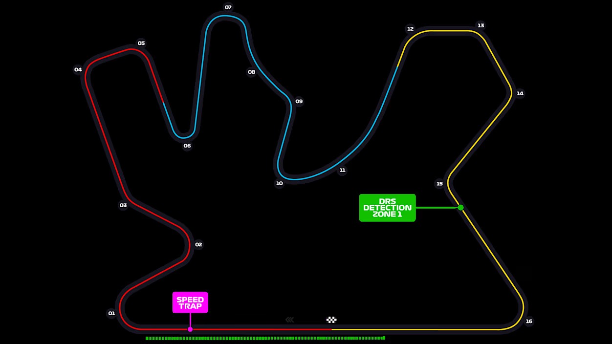 La carrera será a 57 vueltas, en un circuito de 5,419 kilómetros de longitud, con 16 curvas, una zona de DRS y un recorrido total de 308, 883 km. El récord de vuelta lo tiene Lando Norris, con un tiempo de 1:22.384 (2024).