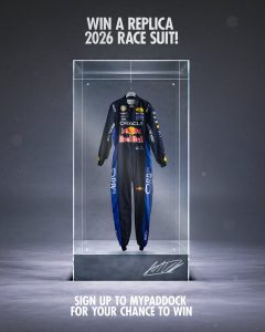 Red Bull decidió realizar un sorteo entre sus aficionados con un premio exclusivo: Una réplica firmada del mono de Max Verstappen. El equipo anunció el sorteo a través de sus redes sociales. ¿Cómo hacer para ganarlo? Es simple, los participantes deberán anotarse en el programa de fidelidad MyPaddock y responder una pregunta.