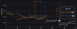 En definitiva, el principal perjudicado por el error fue Piastri, el piloto más veloz de todo el fin de semana en Qatar. Verstappen nunca fue más rápido que el australiano a lo largo del Grand Prix, como muestra el gráfico: