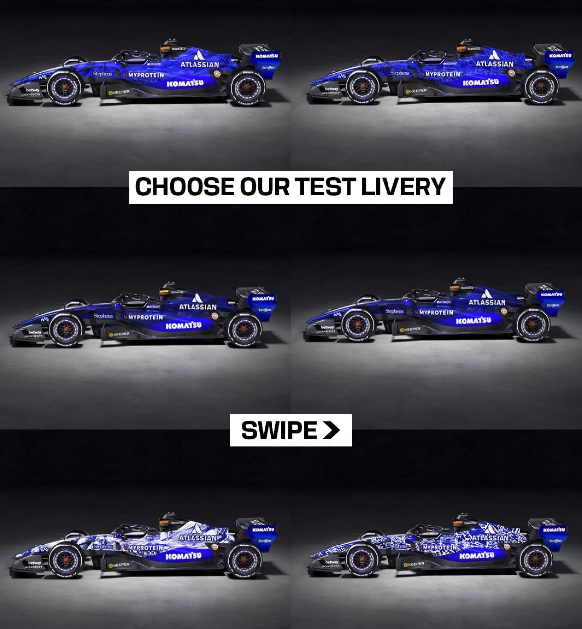 A principios de diciembre , Williams presentó seis diseños distintos que fueron previamente elegidos por los fans. Todas las propuestas tenían el azul de Williams, y tres de ellas incorporaron el nuevo logo del equipo, una reinterpretación moderna del histórico «Forward W» creado por Frank Williams.