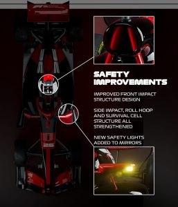 Por último y no menos importante está la seguridad, las estructuras de los coches de la temporada que viene están reforzadas ante los impactos que puedan a llegar a tener. Además, se suma una mayor protección en los laterales, un arco antivuelco que se espera que sea más resistente y agregaron luces en los espejos.