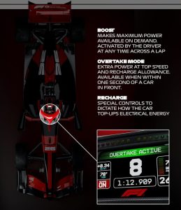 Abu Dhabi fue la última carrera para el conocido DRS; cómo reemplazo los monoplazas tendrán diferentes modos, este sistema no se limita solo a una zona, sino que se podrá usar en diferentes partes del circuito y su función principal es ahorrar energía, algo extremadamente necesario en los nuevos motores híbridos.