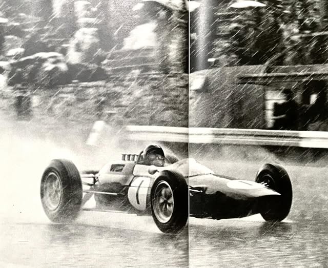 «Adelanté unos 10 autos en la primera vuelta y llegué después de algunos giros más de los 15 totales hasta el cuarto lugar. Tenía a la vista a los líderes (Hill,Surtees,Gurney) hasta que un derrape importante me hizo dar cuenta que estaba yendo demasiado cerca del límite y que tenía que conformarme con la cuarta posición», recordaba Clark sobre la forma en que se adaptó a la situación y se quedó con el consuelo de esa vuelta inicial con la decena de sobrepasos.