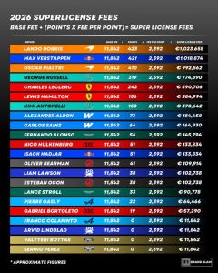 Estas cifras, que pueden parecer exageradas para la mirada común del aficionado, no lo son tanto en un ambiente con millones en juego. Incluso, en muchos casos, por contrato, el pago de las superlicencias no lo hacen directamente los pilotos. Lo realizan los equipos, que de esta manera gozan de una exención para los límites presupuestarios.