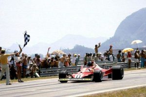 JACAREPAGUÁ 1978: Un triunfo contundente, de punta a punta, al estilo de los que el santafecino entregaba los días en que estaba enchufado. Sin la sombra de Lauda, reemplazado por un juvenil Gilles Villeneuve, el santafesino pudo disfrutar a pleno, sobre la Ferrari 312 T2, las bondades que en esa calurosísima jornada mostró el neumático radial Michelin, y le dio a la marca francesa su primer éxito. Dejó muy lejos a su escolta inmediato, el sorprendente Copersucar de Emerson Fittipaldi.
