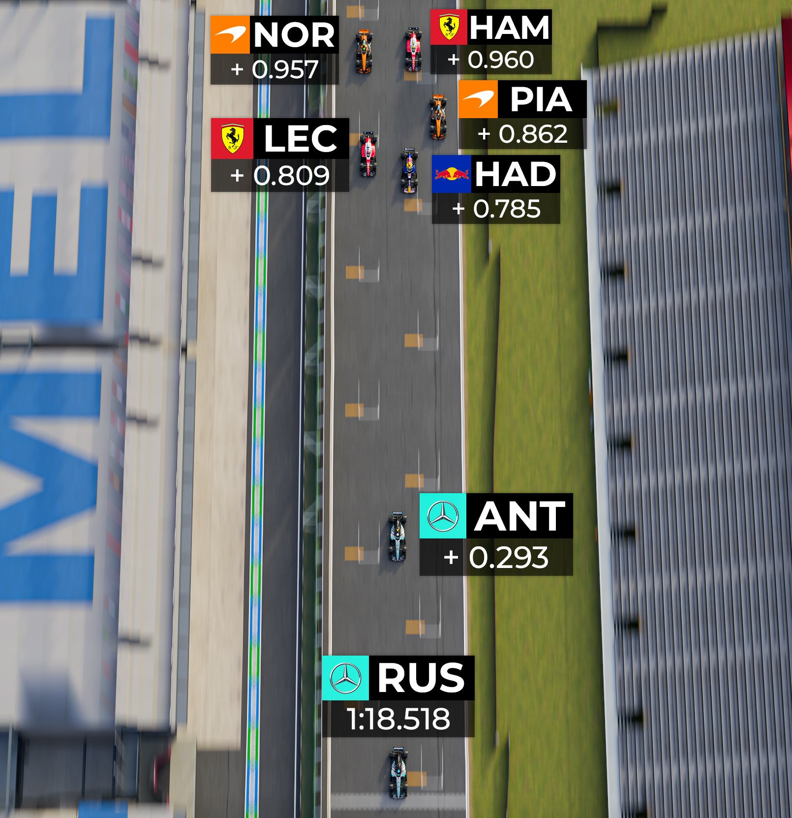Ya se había advertido en las pruebas libres. Mientras Piastri, por ejemplo, ejecutaba el Lift&Coast en tres ocasiones en el primer sector, ni Russell ni Antonelli tenían prácticamente necesidad de hacerlo a lo largo de la vuelta. Y en la larga carrera hacia las curvas 9/10, dónde la velocidad cae estrepitosamente para dar lugar al Super Clipping (los motores eléctricos se convierten en generadores para recargar hasta 250 Kw), la superioridad fue notable.