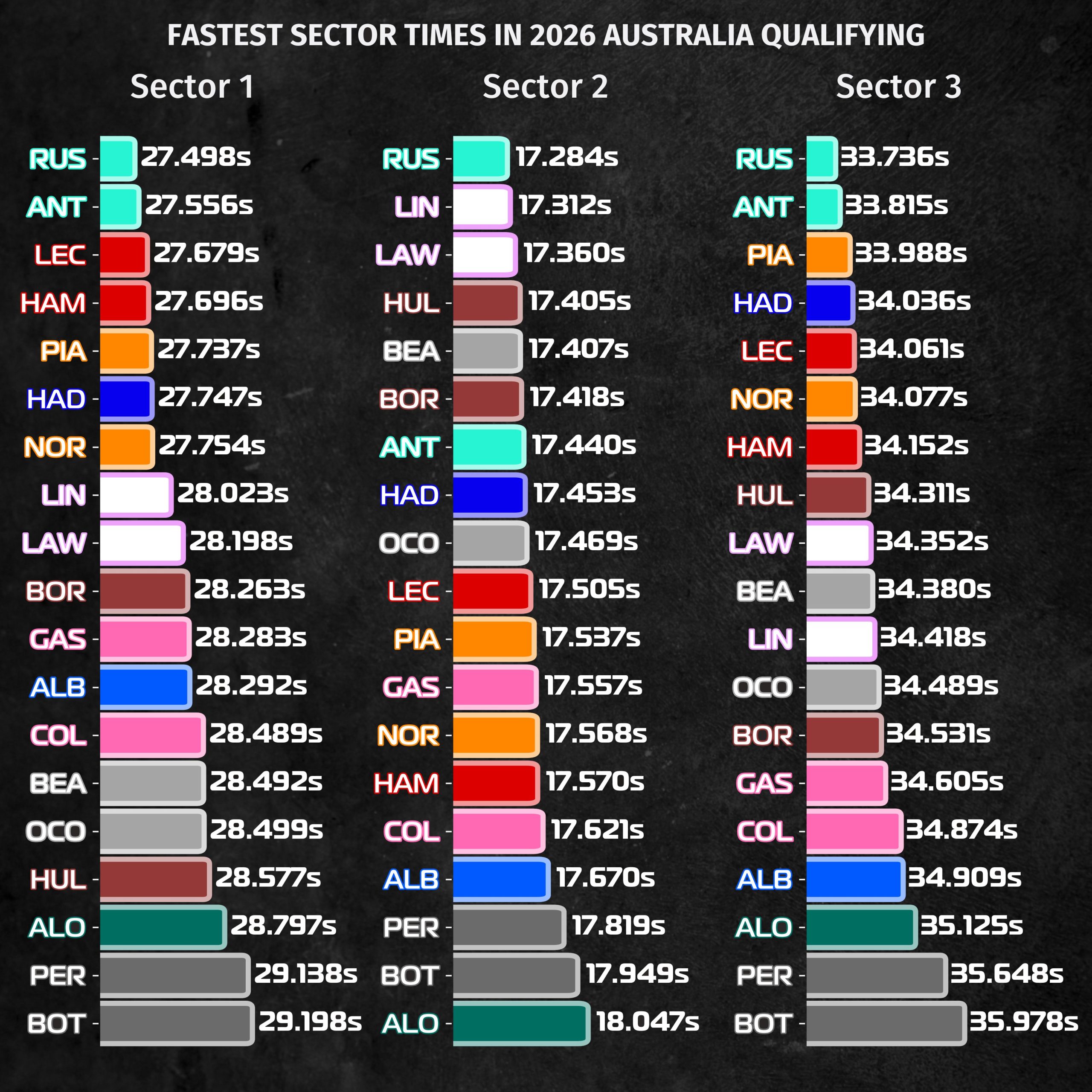 El indicio venía desde las pruebas de Bahrein: Mercedes estaba adelante. Ferrari ya no fue rival cercano a la hora de la vuelta rápida en el Albert Park. George Russell corrió la cortina ya en la Práctica Libre 3, cuando sobre el final sacó de la galera seis décimas de segundo de diferencia, y, luego en la clasificación, obtuvo sucesivamente el mejor tiempo en Q1 (por 0s157 de ventaja), Q2 (por 0s423) y Q3 (por 0s785).