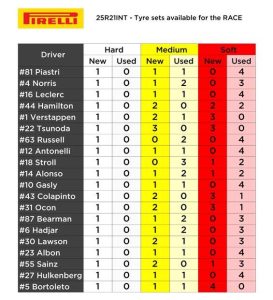 Norris, Leclerc, Piastri, Russell, Hulkenberg, Albon y Colapinto salen con neumáticos MEDIOS. Antonelli, Hadjar, Lawson, Bearman, Gasly, Hamilton, Sainz y Bortoleto van con BLANDOS. Alonso, Stroll, Tsunoda, Verstappen y Ocon van con DUROS.