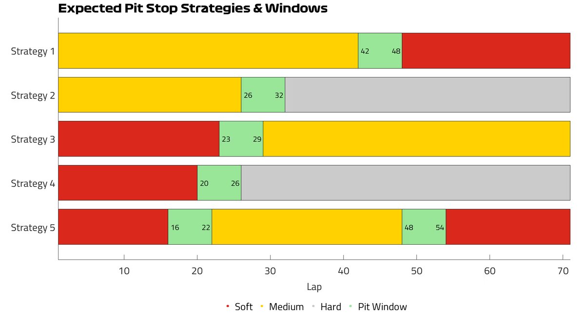 Carlos Sainz es el primer piloto en ingresar a boxes, pero una larga parada de cinco segundos lo condena a salir en la última posición, detrás de Franco Colapinto. Oscar Piastri se acerca a George Russell, el australiano quiere mantener el liderato del Campeonato de Pilotos.